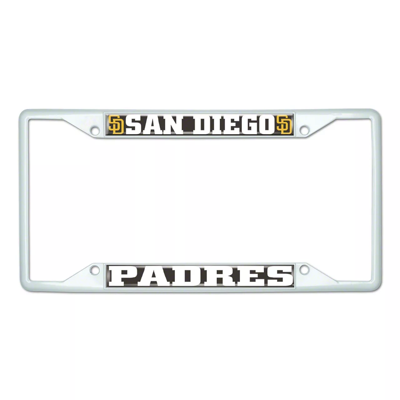 License Plate Frame with San Diego Padres; White (Universal; Some Adaptation May Be Required)