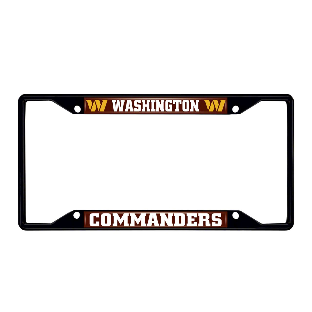 License Plate Frame with Washington Commanders Logo; Black and Black (Universal; Some Adaptation May Be Required)