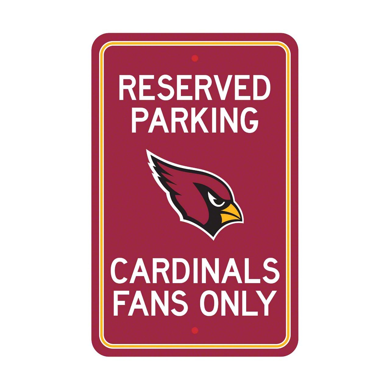 Reserved Parking for Fans Only! This 18in. x 12in. parking style sign is the perfect décor piece for any fan's basement, room, office or tailgate. This sign is lightweight plastic, featuring team colors and logos, as well as 2 pre-drilled holes for convenient hanging. Show everyone what fans are the best!