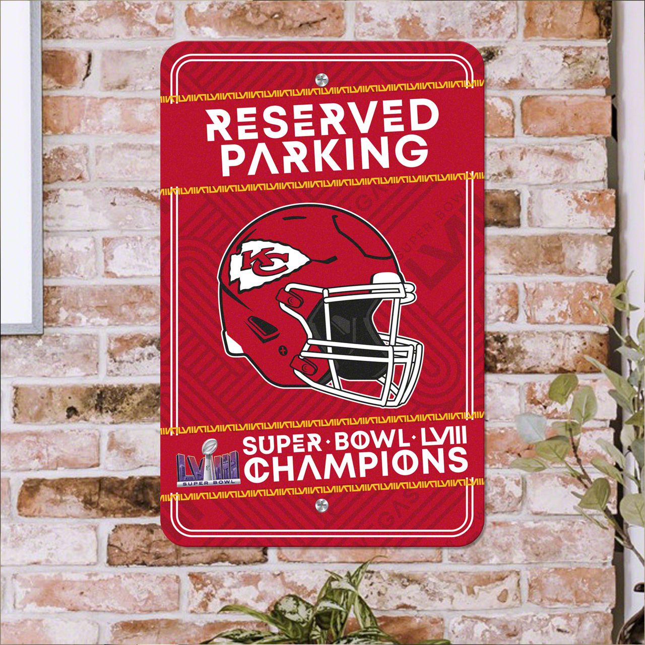 Parking Sign with Kansas City Chiefs Super Bowl LVIII Champions Logo; Red