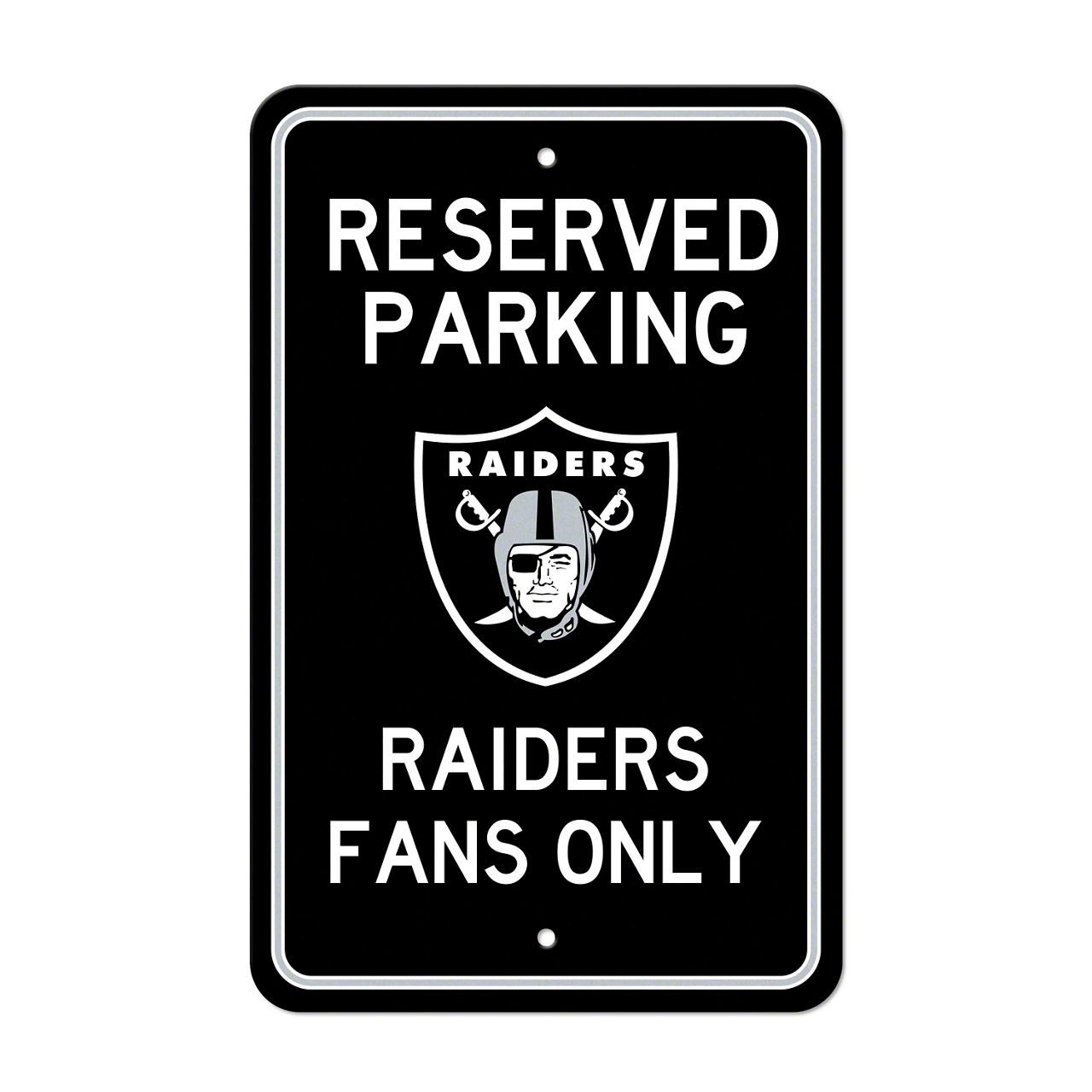 Reserved Parking for Fans Only! This 18in. x 12in. parking style sign is the perfect décor piece for any fan's basement, room, office or tailgate. This sign is lightweight plastic, featuring team colors and logos, as well as 2 pre-drilled holes for convenient hanging. Show everyone what fans are the best!