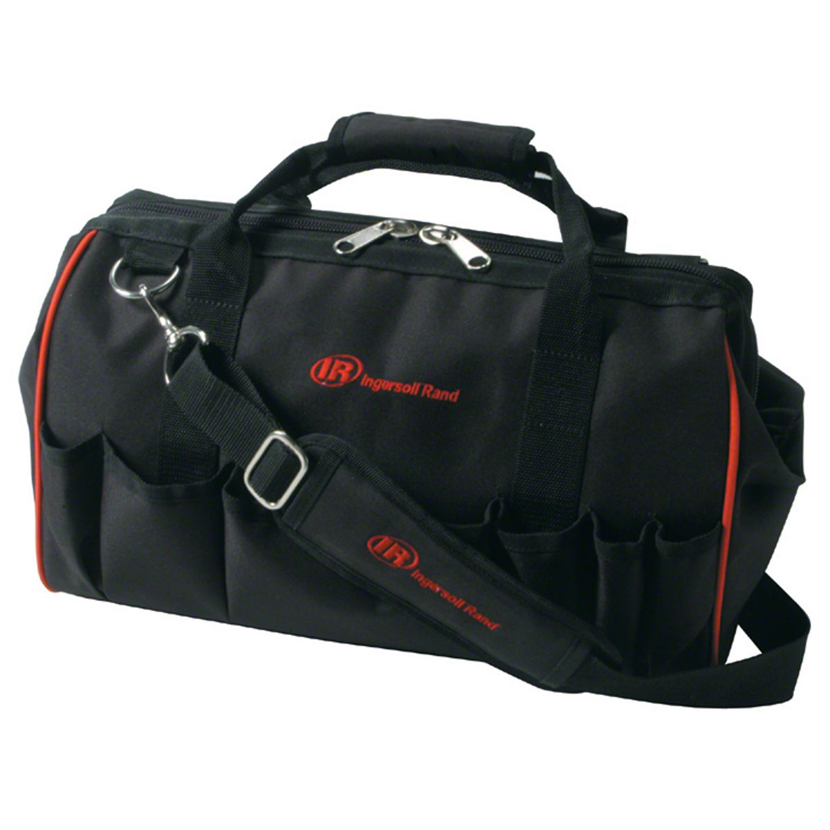 • Ingersoll Rand Tool Bags are designed to help you transport your tools as easily and comfortably as possible. Constructed of double-lined ballistic nylon for durability, these bags also feature a padded shoulder strap and handle for increased comfort. Each bag contains ample room for tools as well as spacious inside and outside pockets for storing accessories. Ingersoll Rand Tool Bags come in three sizes to fit any need.