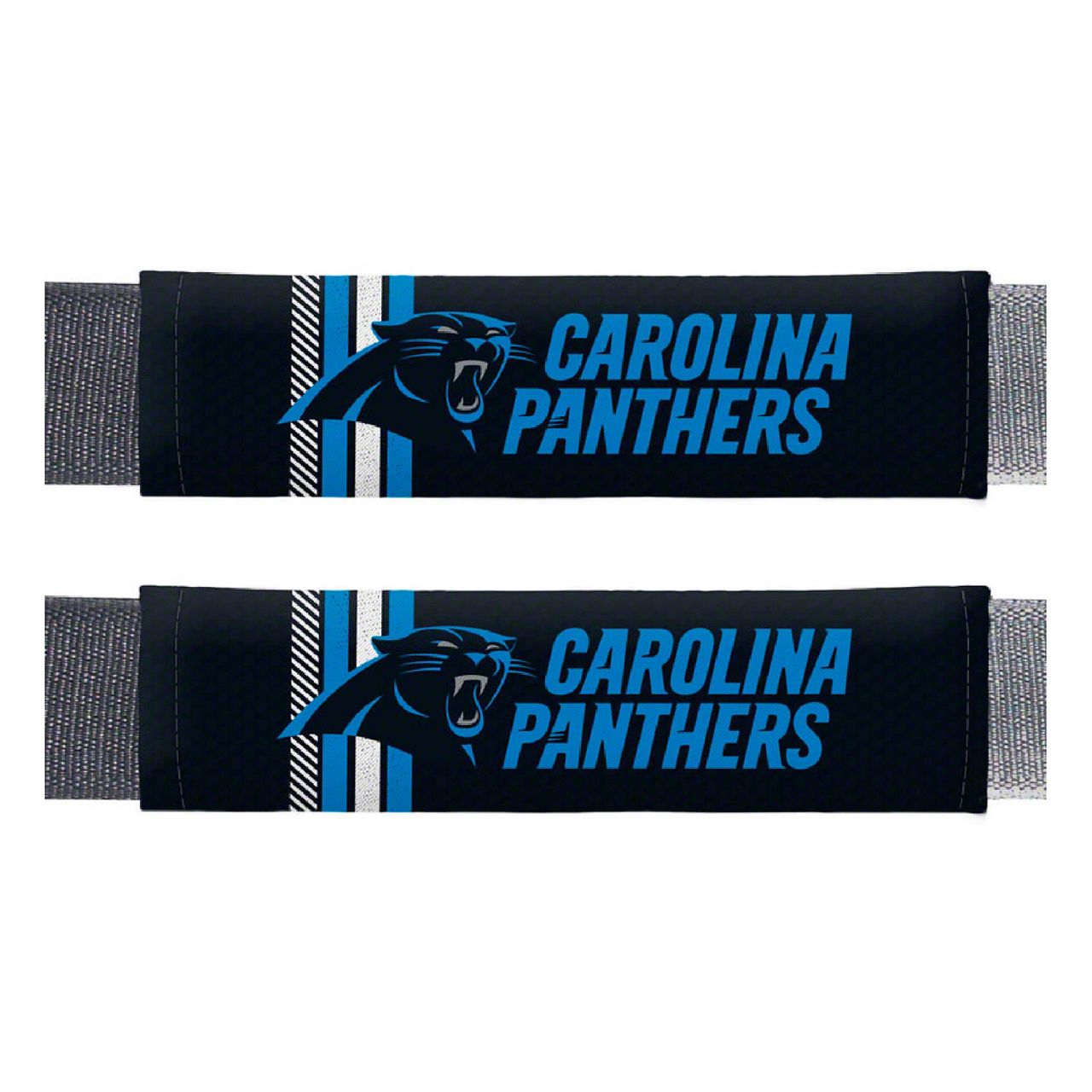 Rally Seatbelt Pads with Carolina Panthers Logo; Black (Universal; Some Adaptation May Be Required)