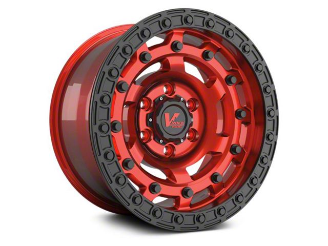 This 17x8.5 V-Rock Off-Road Wheels Strafe Candy Red with Black Ring 6-Lug Wheel is completed in a high-quality, distinct candy red finish for an awesome appearance. There's a durable clear coat finish that protects against driving hazards.