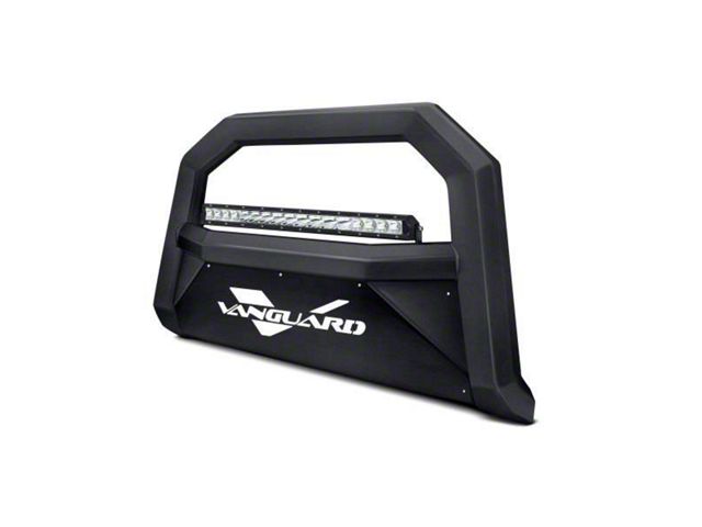 Electrophoretic Primer. Constructed from Q235 structural steel, this Vanguard Off-Road Optimus Bull Bar with 20-Inch LED Light Bar offers superior protection against off-road hazards and potential collisions, ensuring the safety of both your vehicle and its occupants. Covered in a durable black powder coating and layered with an electrophoretic black primer, it is designed to withstand the elements and maintain its sleek appearance over time.