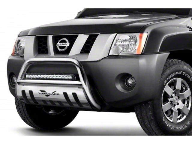 Rugged Front-End Protection. This Bull Bar with 20-Inch LED Light Bar (Stainless Steel) offers both aesthetic appeal and vital protection for the front end of your vehicle. Designed for off-roaders and style-conscious drivers alike, this bull bar enhances front-end durability and nighttime visibility with its integrated LED light bar.