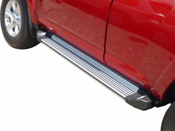 Sleek Integrated Lighting. Illuminate your step into rugged elegance with the Vanguard Off-Road Running Boards with Lights; Brushed Aluminum, featuring integrated lights and a brushed aluminum finish, tailored for the Jeep Grand Cherokee WK2. The built-in LED lights on these running boards provide clear, bright illumination, ensuring safe entry and exit in low-light conditions. Safety is paramount with a broad, secure stepping area that's been meticulously designed with non-slip technology to prevent any missteps, regardless of weather conditions.