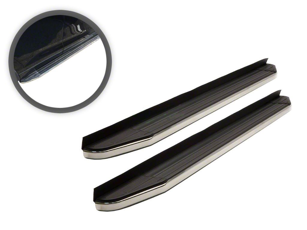 Stand Out from the Crowd. The F6 Style Running Boards in Black are designed to not only be functional but also visually appealing. These running boards give your vehicle a sleek, streamlined appearance that complements its overall design. The black finish adds a touch of elegance and sophistication, making it stand out from the crowd.