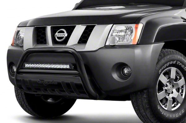 Bold Road Protection. Take your Jeep to the next level with the Vanguard Off-Road Bull Bar with 20-Inch LED Light Bar; Black. Not only does the Vanguard Off-Road Bull Bar offer practical functionality, but it also enhances the aesthetic appeal of your ride. The sleek black finish adds a touch of aggression and style to your vehicle's front end, making it stand out from the crowd.