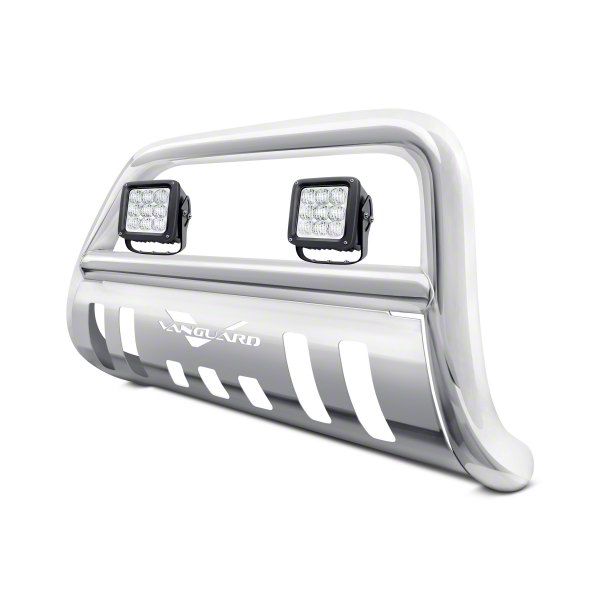 Skid plate with laser-cut Vanguard logo provides great shielding from road debris