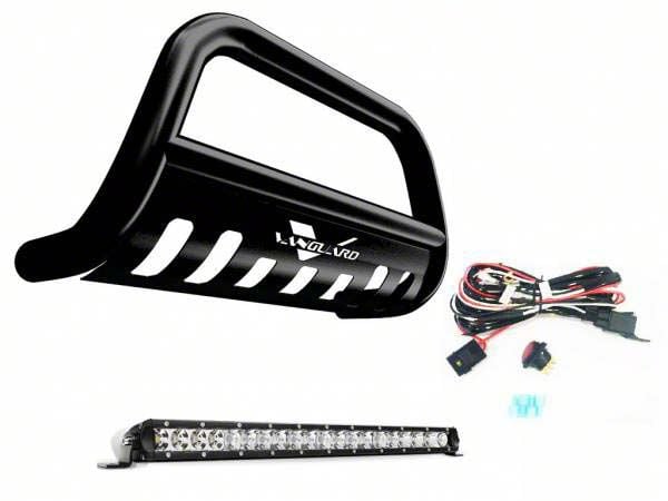 Additional Lighting. The Vanguard Off-Road Bull Bar comes equipped with a powerful 20-inch LED light bar, ensuring enhanced visibility during off-road adventures or nighttime driving. Additionally, it is designed with pre-drilled holes, allowing for easy installation of auxiliary lights, further illuminating your path and customizing your lighting setup to meet your specific needs. C