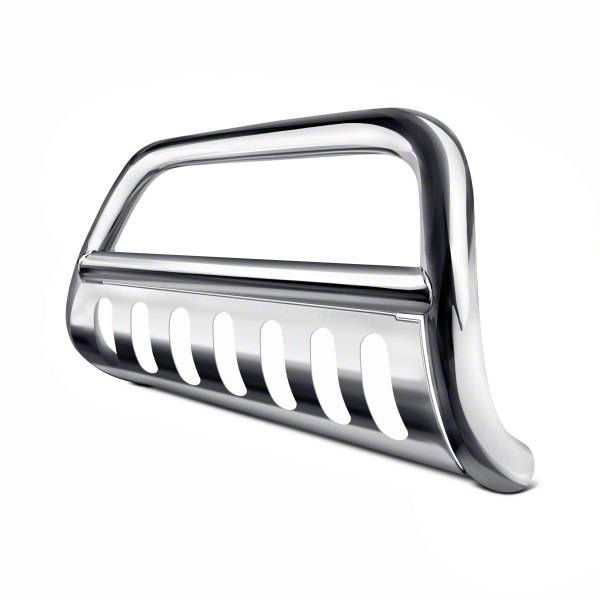 Construction and Appearance. Crafted from 2.5‑inch T‑304 stainless steel with a mirror‑polished chrome finish, this bull bar is built to resist corrosion and maintain a sleek aesthetic. It features a stainless skid plate with a laser‑cut Vanguard logo, giving it both function and flair.