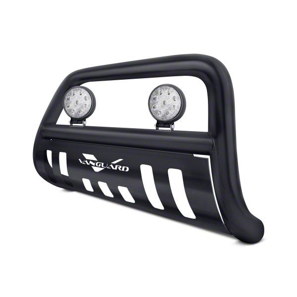 Front-End Protection and Lighting. The Bull Bar with 4.50-Inch Round LED Lights enhances your vehicle's front-end protection while providing additional lighting. Designed for durability and affordability, this bull bar effectively shields your vehicle from road debris and minor impacts, ensuring your front end remains in top condition.