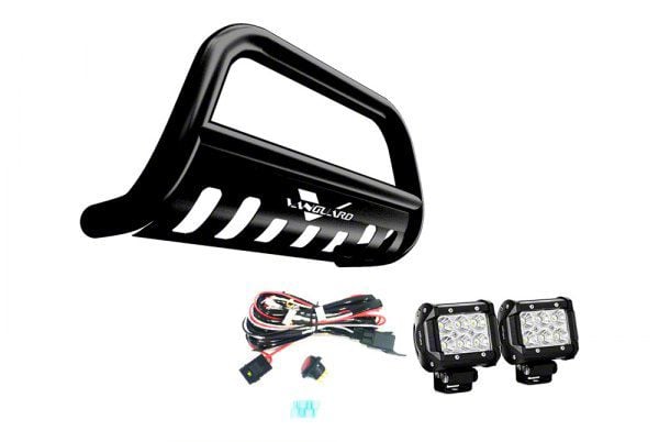 Protective with Included Lighting. Made for the Toyota Tacoma models, excluding TRD models, this Bull Bar comes in a glossy black finish. Built with a protective design, this bull bar is crafted from T304 stainless steel tubing with a skid plate for additional protection. This bull bar also includes 2 matte black finish housing LED lights for additional nighttime or bad weather illumination.