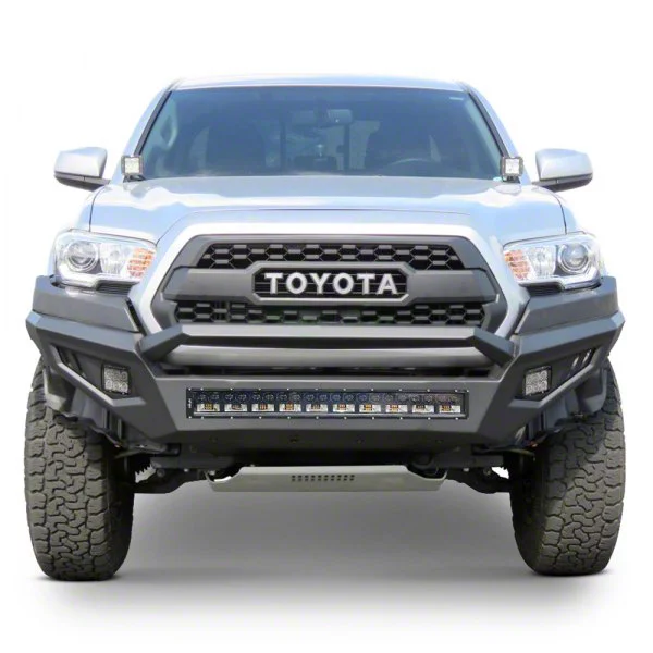 Reliable and Rugged Protection. This bumper is made from lightweight extruded aluminum for reliable front-end protection and features a black powder coat finish for a tough, rugged look. It's designed to fit all 2016-2023 Toyota Tacomas and includes a pre-drilled hole for mounting a winch. With its easy installation and solid construction, this bumper is the perfect way to beef up your Tacoma's off-road capabilities. Don't let the adventure end when the pavement does - make sure you're prepared for anything with the Vanguard Off-Road HD Front Bumper with Hoop.