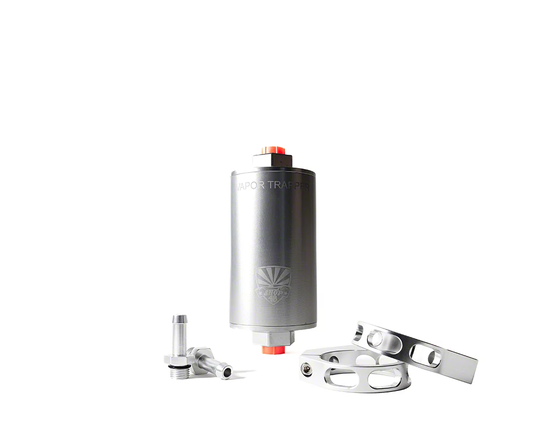 Vapor Trapper™ Premium Install Packages are now available! Get everything you need for a proper Vapor Trapper™ installation in one package! Includes:1 x Vapor Trapper™ (Select model at checkout)2 x Barb Fittings (Select size at checkout)2 x Premium Billet Aluminum Clamps (Fuel-rated vent hose supplied by customer.) The Shop48 Vapor Trapper™ is a high-quality billet aluminum charcoal canister that eliminates fuel odors from vented fuel tanks. Its specialized charcoal media traps vapors, keeping garages and cabins fume-free. Designed for universal fitment, it installs easily in line with your fuel tank vent hose and supports almost every inlet/outlet setups. It’s also fully serviceable and rechargeable for long-lasting performance.Built for tough conditions, the Vapor Trapper™ eliminates odors without restricting airflow or affecting fuel system function—ideal for classics, hot rods, trucks, or boats. Proudly made in the USA and trusted by pros nationwide, it's available in black or silver anodized finishes for a clean, durable look.