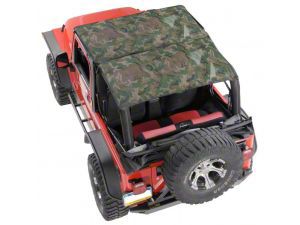 Enhanced Sun Protection with Trail-Ready Style. The KoolBreez Full-Length Brief Top shields Jeep TJ interiors from intense sun while adding rugged, camouflage-themed styling. Designed to stretch across the full cabin, it reduces glare and UV exposure for both driver and passengers while still offering the open-air experience.
