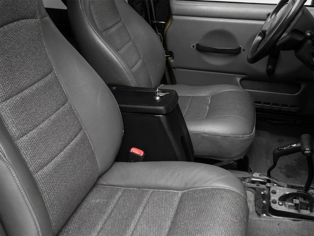 Secure Upgrade. Upgrade the interior of your 1997-2002 TJ to a more secure one with a Locking Center Console. This Locking Center Console will give you a sense of security with its concealed locking storage area. This Center Console features a large armrest, 2 cup holders for rear passengers and will not interfere with operation of the parking brake.