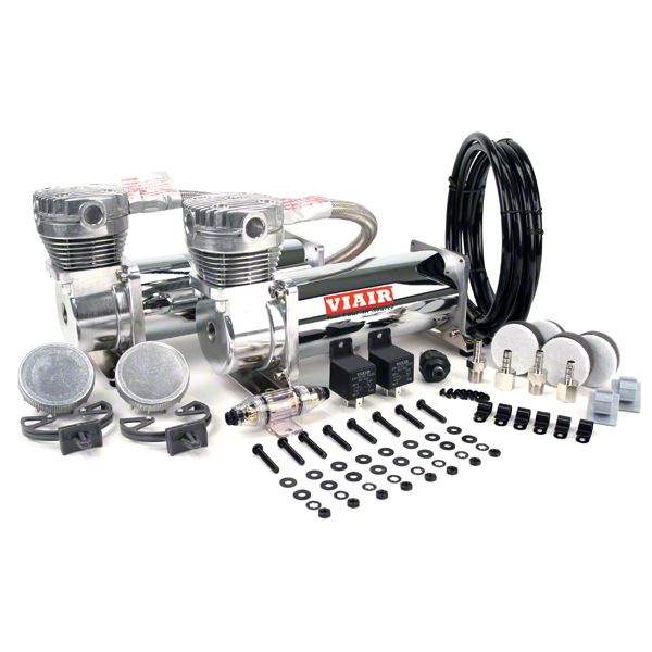 Description. Providing 200PSI and a 100% duty cycle, VIAIR’s 480C Dual Performance Value Pack is an ideal air source solution for any air suspension kit, industrial applications, air horns, or off-road pneumatic needs. Each Dual Pack includes two VIAIR 480C Pewter, Chrome, or Stealth Black air compressors, two heavy duty 40-amp relays, a 165 PSI cut-on, 200 PSI cut-off pressure switch, and remote mount filter assemblies with mounting hardware.