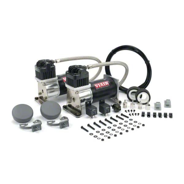 The VIAIR 280C Dual Pack is ideal for lighter air suspension systems, capable of providing a maximum of 150 PSI and a 30% duty cycle. The kit features two 12-volt Silver on Black 280C air compressors, two 40-amp relays and a 110 PSI cut-on, 145 PSI cut-off heavy-duty pressure switch. Each 280C Dual Performance Value Pack also comes with remote mountable air filter assemblies and mounting hardware.