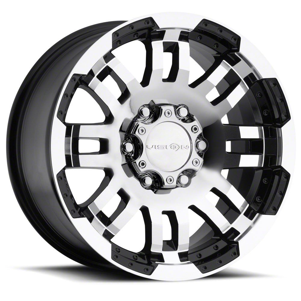 Vision Off-Road Warrior Gloss Black Machined 6-Lug Wheel; 16x8; 12mm Offset. The Warrior Gloss Black Machined 6-Lug Wheel; 16x8; 12mm Offset from Vision Off-Road combines elegance with a modern edge, perfect for those looking to enhance their vehicle's look. Its design complements various vehicle styles and speaks to the wheel's premium quality, adding a touch of sophistication to any car.