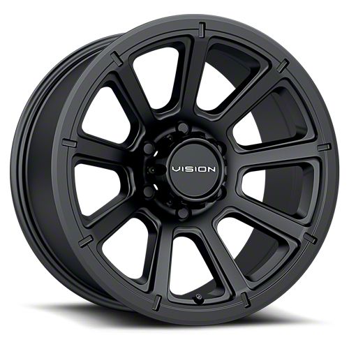 Vision Off-Road Turbine Matte Black 6-Lug Wheel; 17x8.5; 18mm Offset - This wheel's elegant design will certainly enhance your vehicle's aesthetic, complementing its luxury and performance. The unique styling of this wheel makes it an ideal choice for a standout quality of your ride, reflecting the premium quality associated with the Vision Off-Road brand.
