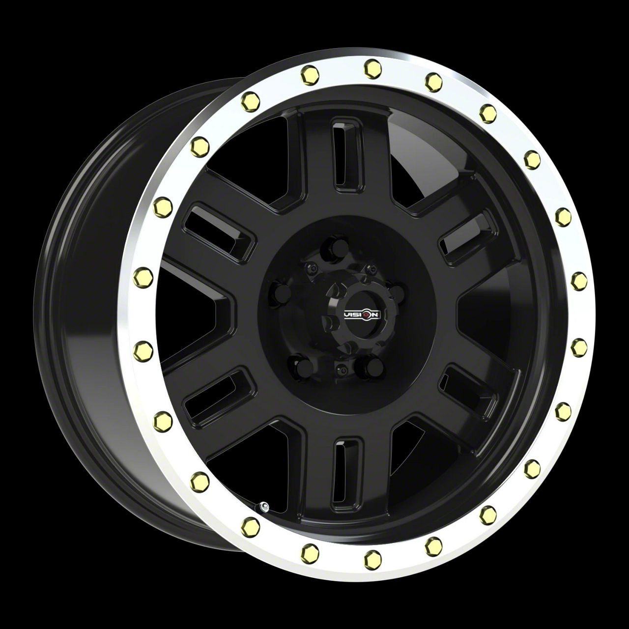 This 18x9 Vision Off-Road Manx Gloss Black Machined Lip Wheel; 18x9; 18mm Offset is completed in a gloss black finish with steel machined accents that will be the envy of everyone. For added looks and strength, there is a clear coat that protects against whatever the road throws at you.