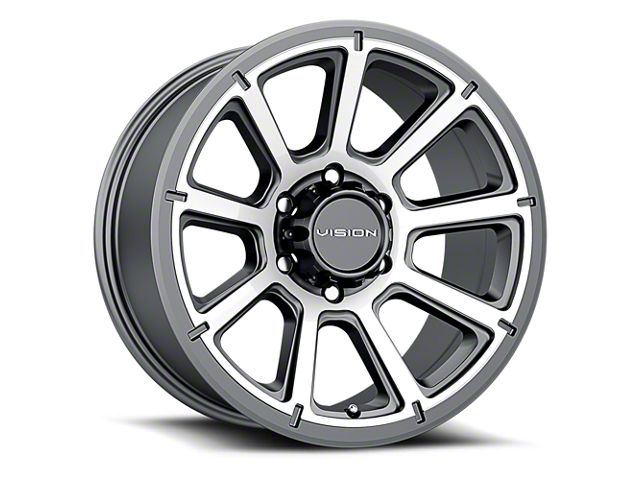 Vision Off-Road Turbine Gunmetal Machined Face Wheel; 17x8.5; -6mm Offset delivers a bold and modern aesthetic, ideal for enthusiasts seeking a refined yet assertive look for their vehicle. With its standout design and distinct finish, this wheel enhances the vehicle's visual stance and street presence. The precise craftsmanship and premium aluminum build reflect Vision Off-Road's dedication to quality and distinctive design. Whether parked or in motion, this wheel draws attention with its clean, aggressive styling.