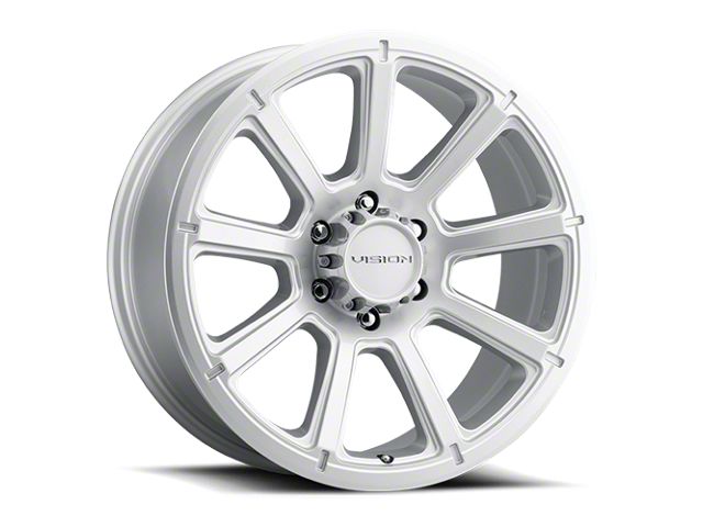 This 17x8.5 Vision Off-Road Turbine Winter Paint-Silver Wheel; 17x8.5; -6mm Offset is completed in a high-quality silver finish that will be the envy of everyone. For added protection and looks, there is a clear coat designed to handle whatever the road, or beyond, throws at it.