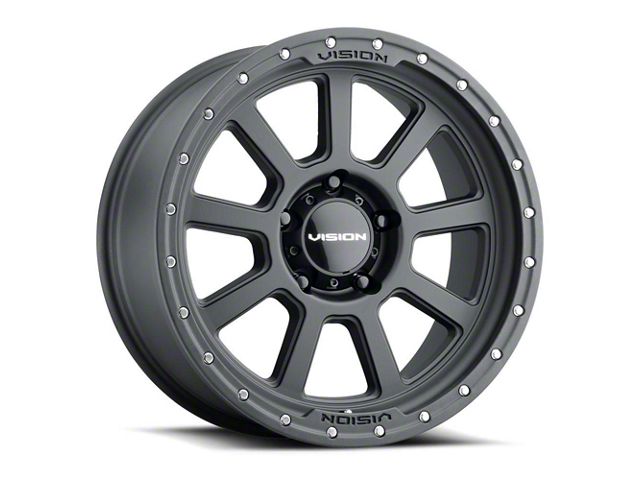 Vision Off-Road Ojos Satin Black Wheel; 18x9. The Vision Off-Road Ojos Satin Black Wheel offers a striking balance of style and refinement. Its unique design accentuates the vehicle's aesthetic, while the premium construction underscores its robust nature. This wheel is a perfect choice for those seeking both elegance and a strong visual statement.
