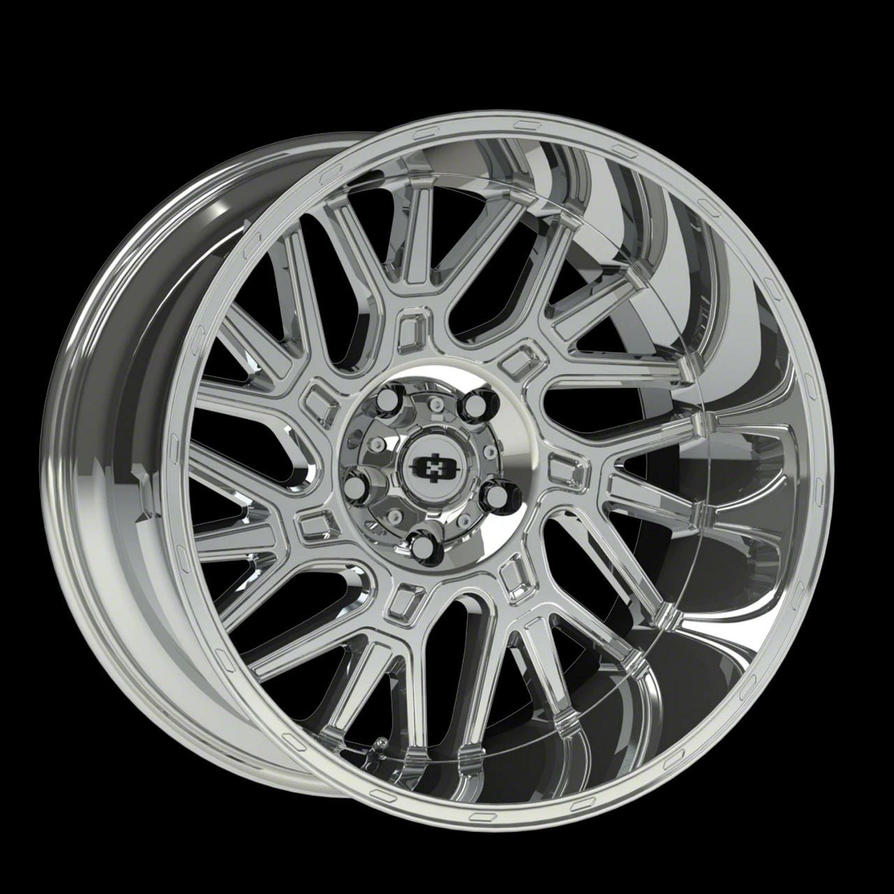 This 22x12 Vision Off-Road Brawl Chrome Wheel; 22x12; -51mm Offset is completed in a striking chrome finish that will be the envy of everyone. For added looks and strength, there is a clear coat that protects against whatever the road throws at you.