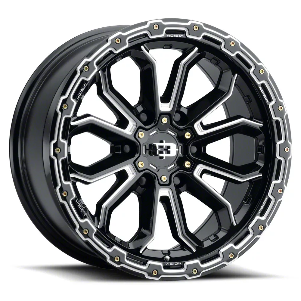 Vision Off-Road Korupt Gloss Black Milled Spoke Wheel; 17x9; 12mm Offset This wheel delivers distinctive styling with unique design elements that set your vehicle apart from the crowd. Its eye-catching appearance combines functional design with bold aesthetics. The carefully engineered profile enhances the overall stance and presence of trucks and SUVs.