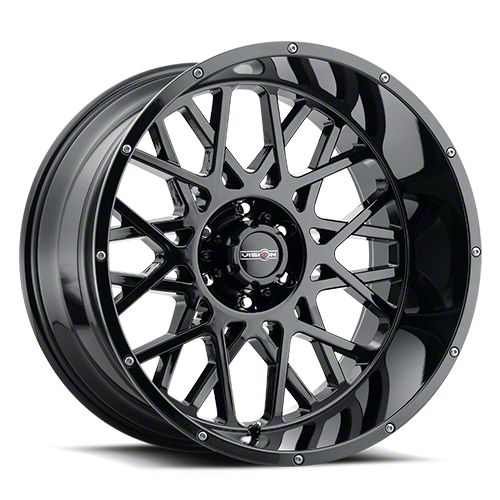 The 24x12 Vision Off-Road Rocker Gloss Black Wheel is completed in a high-quality gloss black finish, which looks great. Thanks to a durable clear coat, the finish also protects against the rigors of driving.