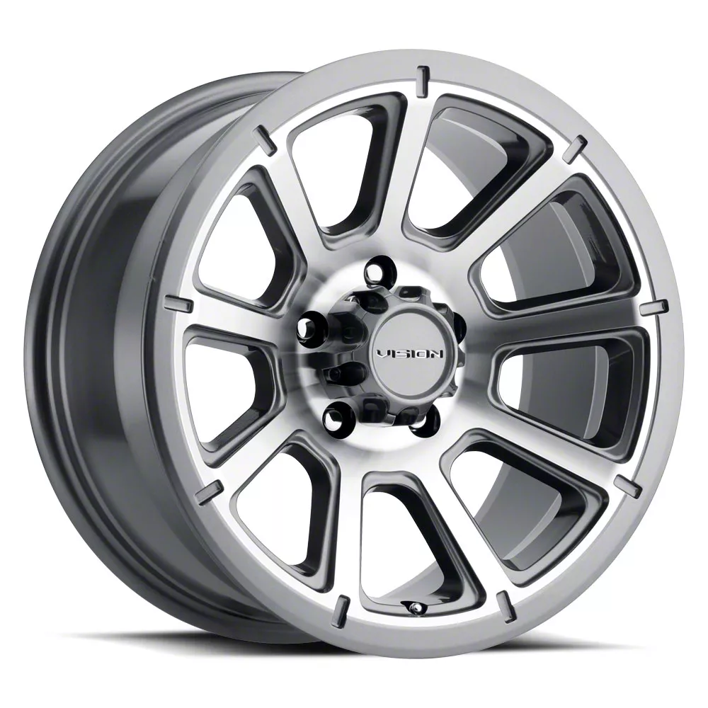 Vision Off-Road Turbine Gunmetal Machined Face Wheel; 15x6; 0mm Offset This wheel delivers distinctive styling with unique design elements that set your vehicle apart from the crowd. Its eye-catching appearance combines functional design with bold aesthetics. The carefully engineered profile enhances the overall stance and presence of trucks and SUVs.