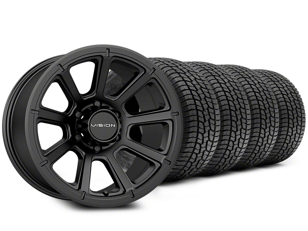 Mounted and Balanced Wheel and Tire Kit. This wheel and tire combo kit features (4) 16x8 Vision Off-Road Turbine Matte Black 6-Lug Wheels and (4) West Lake All-Terrain SL369 265/75R16 tires that have been put together into an easy to buy kit that arrives to your door already mounted and balanced ready to be installed on your vehicle.