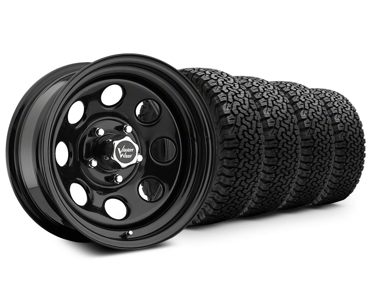 Mounted and Balanced Wheel and Tire Kit. This wheel and tire combo kit features (4) 17x9 Vision Off-Road Soft 8 Gloss Black 6-Lug Wheels and (4) BF Goodrich All-Terrain T/A KO 285/70R17 tires that have been put together into an easy to buy kit that arrives to your door already mounted and balanced ready to be installed on your vehicle.
