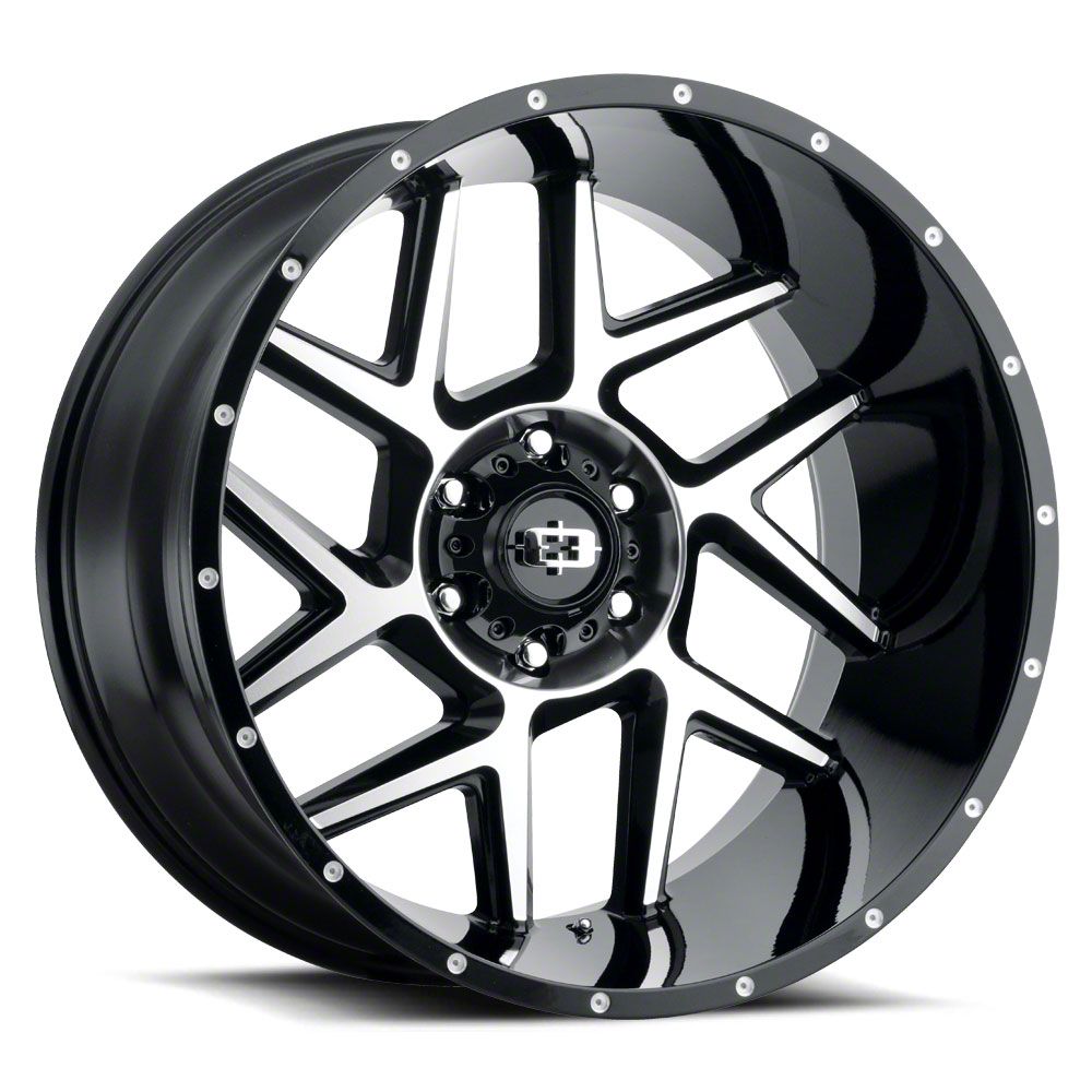 This 20x9 Vision Off-Road Sliver Gloss Black Machined 6-Lug Wheel is completed in a high-quality gloss black finish with machined accents to create an impressive appearance. There's a durable clear coat that protects against driving hazards.