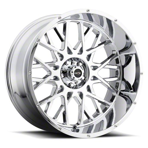 This 22x10 Vision Off-Road Rocker Chrome 6-Lug Wheel is completed in a high-quality, polished chrome finish that will make the wheel the envy of everyone. There is a durable clear coat that protects against driving hazards.One-Piece Cast Aluminum Construction. This wheel is manufactured using gravity casting. Gravity casting is the process of pouring a molten aluminum alloy into a wheel mold or form utilizing the earth's own gravity to help fill the mold. The result is a strong, durable wheel that has the same good looks as a more expensive wheel, at a fraction of the price.