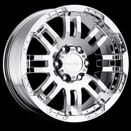 The 20x9 Vision Off-Road Warrior Chrome 6-Lug Wheel; 20x9; 0mm Offset is completed in a polished chrome finish that will make everyone green with envy. For added protection and good looks, this wheel features a durable clear coat that is tough enough to stand up against the hazards of everyday driving.