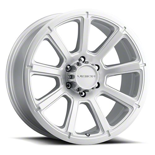 This 20x9 Vision Off-Road Turbine Winter Paint-Silver 6-Lug Wheel; 20x9; 18mm Offset is completed in a high-quality silver finish that will be the envy of everyone. For added protection and looks, there is a clear coat designed to handle whatever the road, or beyond, throws at it.