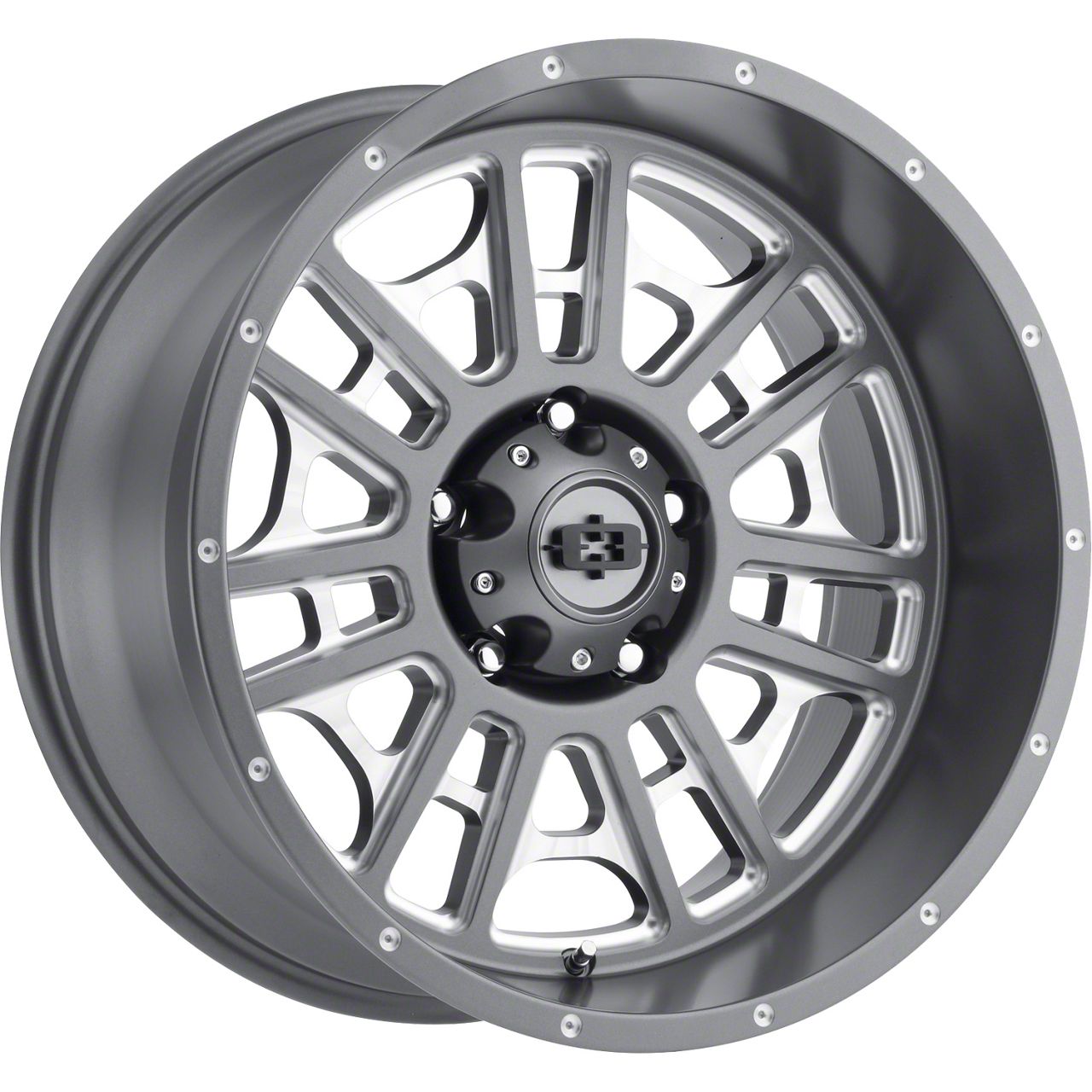 This 20x9 Vision Off-Road Widow Satin Gray Milled 5-Lug Wheel is completed in a high-quality satin gray finish for a striking appearance. There's a durable clear coat to help protect against driving hazards.