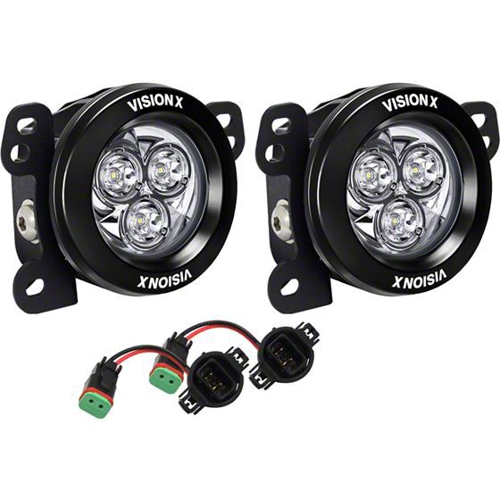 Description. With the Vision X Fog Light kit, you can rest assured that the LEDs inside are the best LEDs obtainable. Top-binned and perfectly constructed, these high powered LEDs are capable of outputting the maximum amount of lumens per LED. The Vision X OE Kits are designed with the customer in mind with easy direct to factory fitting kits that take little to no modification to install. Every kit comes with direct to factory plugs to make an easy connection between your new lights and your factory plugs.