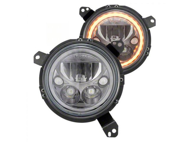 Application. A Vision X 7-Inch VX Series LED Headlight Kit with Amber Halo fits 2018-2026 Jeep Wrangler JL models.