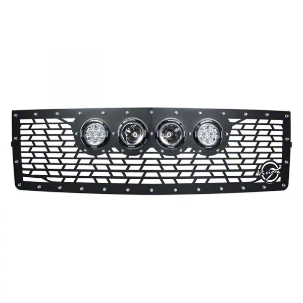 Construction and Appearance. Crafted from durable stainless steel with a satin black finish, this grille is built to withstand harsh conditions while maintaining a sleek, aggressive look. The integrated LED lights deliver brilliant forward lighting with exceptional distance and clarity, while the grille's robust frame ensures long-lasting durability and rust resistance.