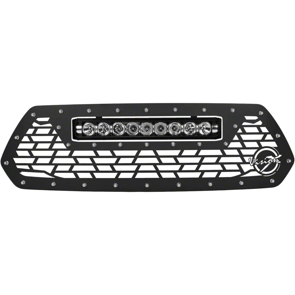 Lighting and Style. Take on the off-road on any day and time with this Vision X Upper Replacement Grille with XPR-9M Light Bar; Satin Black on your Tacoma. The centerpiece of this Replacement Grille is the powerful Vision X XPR-9M LED Light Bar. Boasting a high lumen output, this 19-inch light bar utilizes high-intensity LEDs to deliver a remarkable combination of distance and width for optimal illumination. Whether you're off-roading at night or navigating dark country roads, you'll never be left in the dark again.
