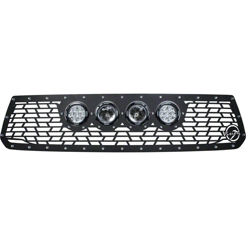 Lighted Grille. The Vision X Upper Replacement Grille is an exquisite upgrade for discerning vehicle owners. This premium accessory, featuring four 4.50-inch CG2 Cannon LED Lights, is expertly designed to enhance both aesthetics and functionality. It also features accurately tilted IRIS reflectors that ensure optimal lighting performance.