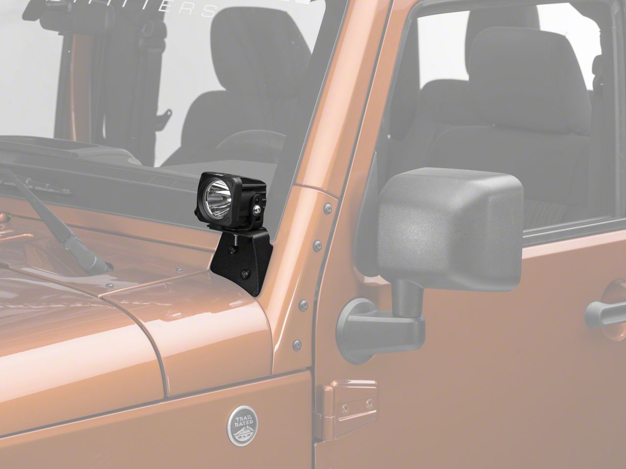 Durable Mounts. This Wrangler Lighting Kit includes durable, steel a-pillar brackets for reliable strength against brush, branches and trail debris. They're finished in a tough black powder coat finish to prevent unwanted corrosion and wear. The included lights feature an extruded 6061 aluminum housing and an unbreakable polycarbonate lens made to last through intense off-road conditions.