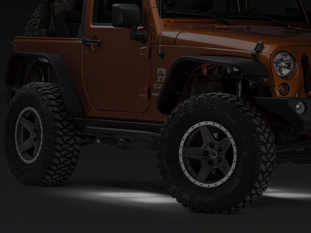 Application. This Vision X Tantrum LED Rock Light kit in White is designed for use on all 1966-2026 Jeep CJ and Wrangler Models.