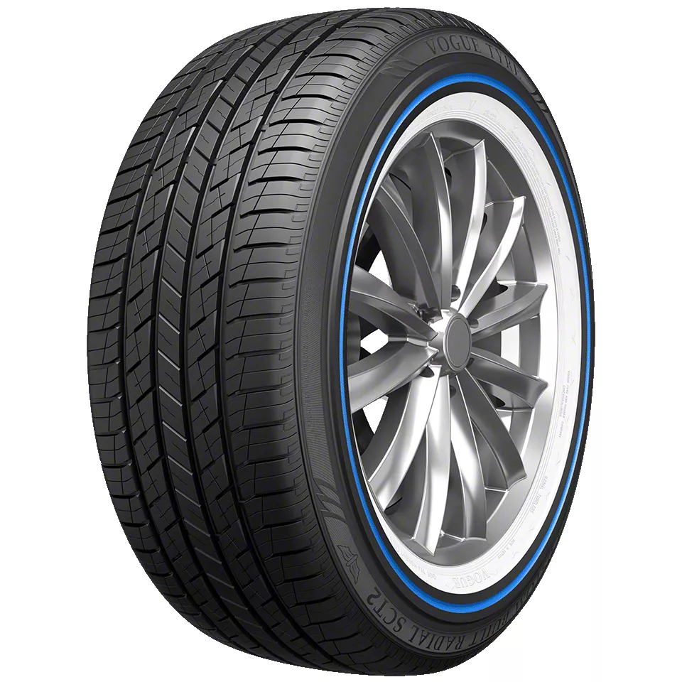 Give your SUV, Crossover or Light Truck a bold appearance with Vogue Tyre’s Custom Built Radial SCT2 Blue Stripe including our exclusive white and red sidewall design. Vogue Custom Built Radial SCT2 Blue Stripe tyres move you freely from the rugged world of off-road to the smooth pavement of the expressway. The wide, aggressive tread design provides superb all-season traction, handling and stability. Backed by Vogue Tyre’s industry-leading craftsmanship and care promise, the Custom Built Radial SCT2 Blue Stripe offers uncompromising quality that delivers the ideal blend of style with the added benefits of enhanced wear and all-season performance.