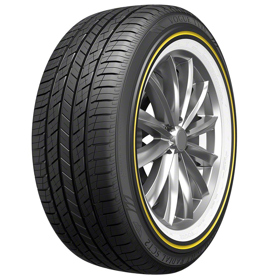 Give your SUV, Crossover or Light Truck a bold appearance with Vogue Tyre’s Custom Built Radial SCT2 including our exclusive white and gold sidewall design. Vogue Custom Built Radial SCT2 tyres move you freely from the rugged world of off-road to the smooth pavement of the expressway. The wide, aggressive tread design provides superb all-season traction, handling and stability. Backed by Vogue Tyre’s industry-leading craftsmanship and care promise, the Custom Built Radial SCT2 offers uncompromising quality that delivers the ideal blend of style with the added benefits of enhanced wear and all-season performance.